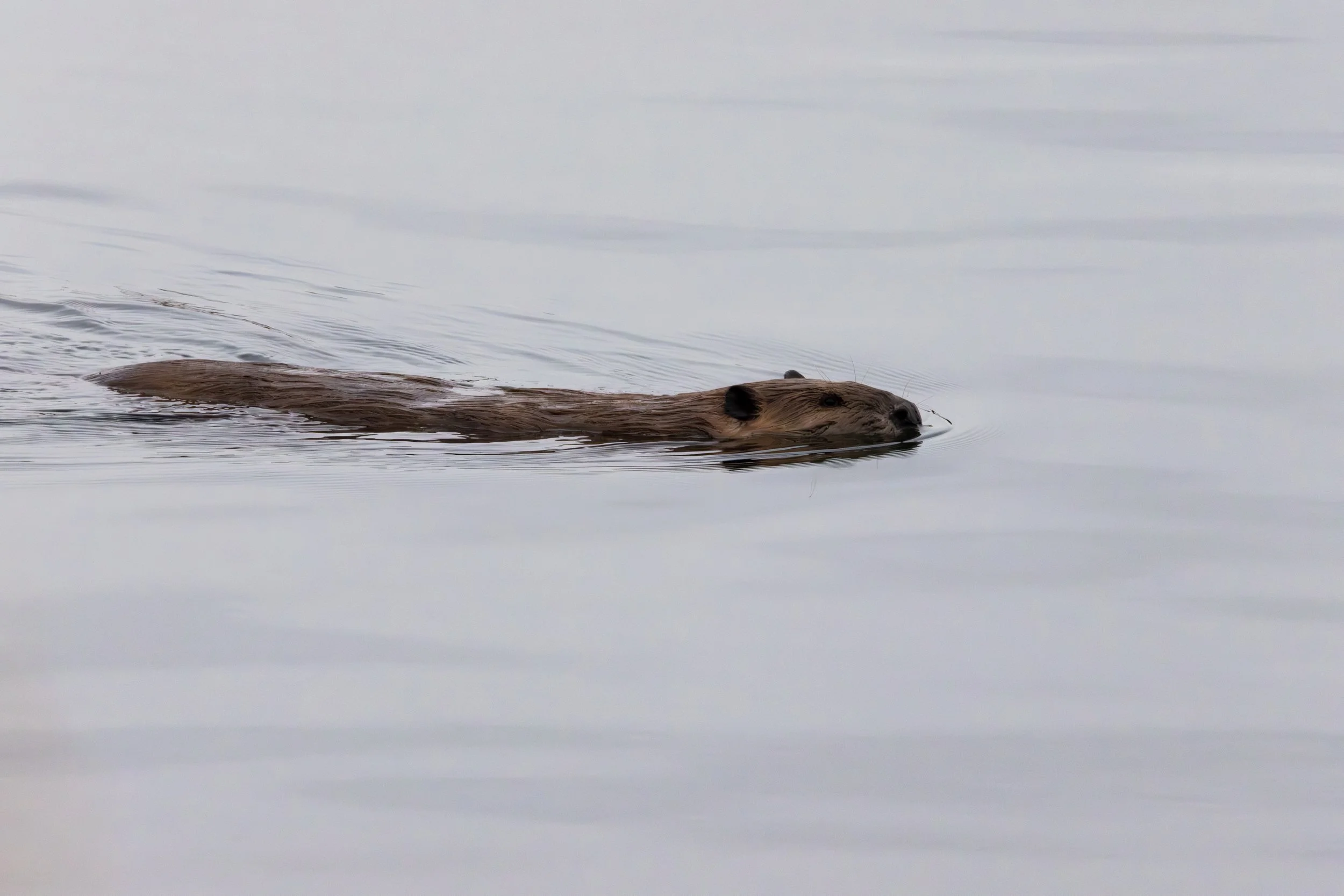 When I got to the main park area I saw a bunch of Trumpeter Swans out on the water. They are always fun to watch. I spotted a group of people all looking at something and they pointed out some other critters out on the water. There was a muskrat sitting on the eat munching on some food as well as a beaver swimming along the water.